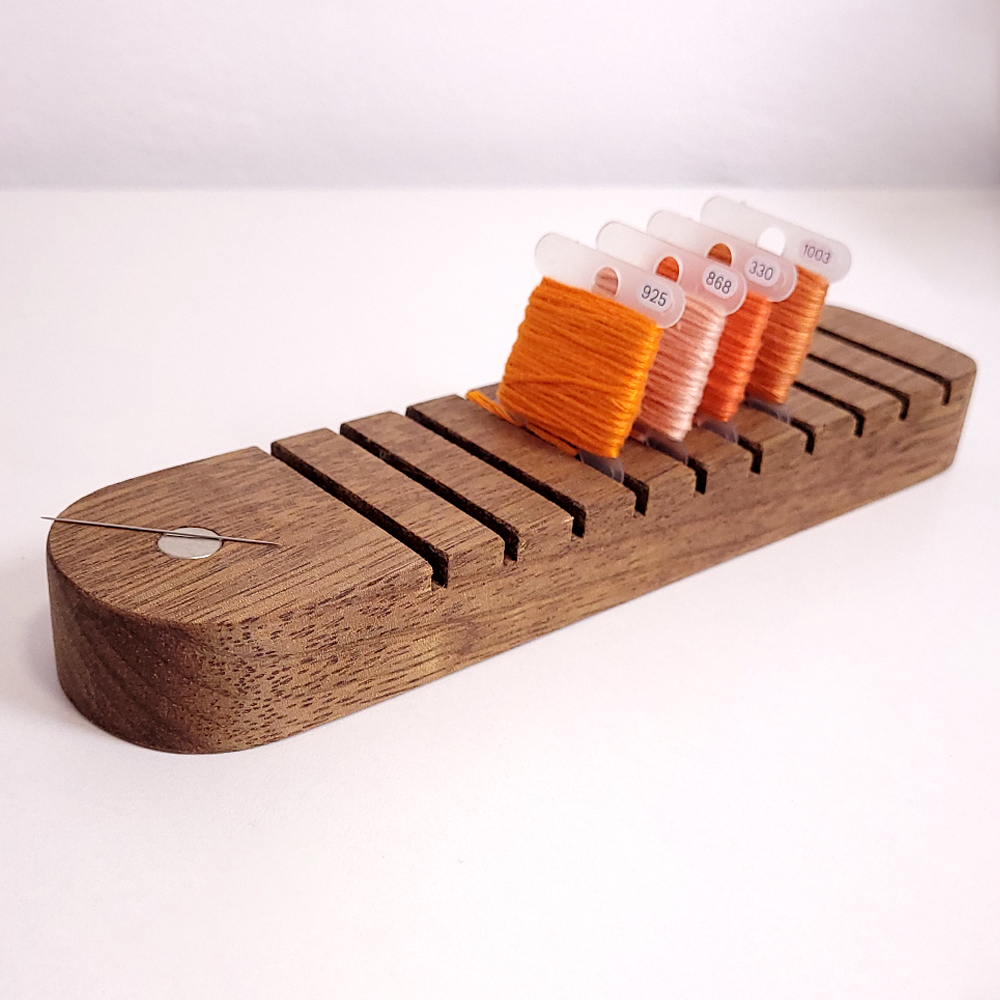 A Mesa para Plaquinhas de Meadas é uma ótima aliada na hora de bordar, pois deixa à mostra as linhas que estão sendo utilizadas no momento, o que torna o processo de troca de linhas muito mais fácil. Sem falar que fica um conjunto lindo demais com o suporte Monet e as Caixas Organizadoras.